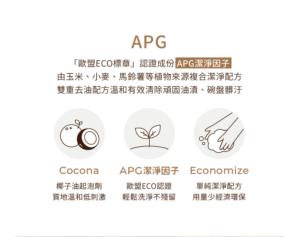 使用歐盟「ECO」標章認證通過成分APG潔淨因子