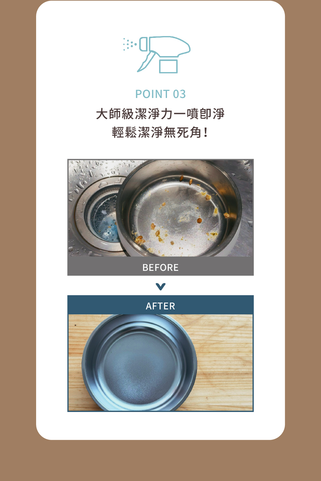 大師級潔淨力,一噴即淨,潔淨無死角!