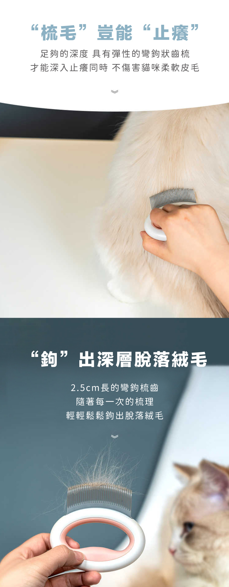 ●2.5cm彎鉤梳齒,弧形梳面